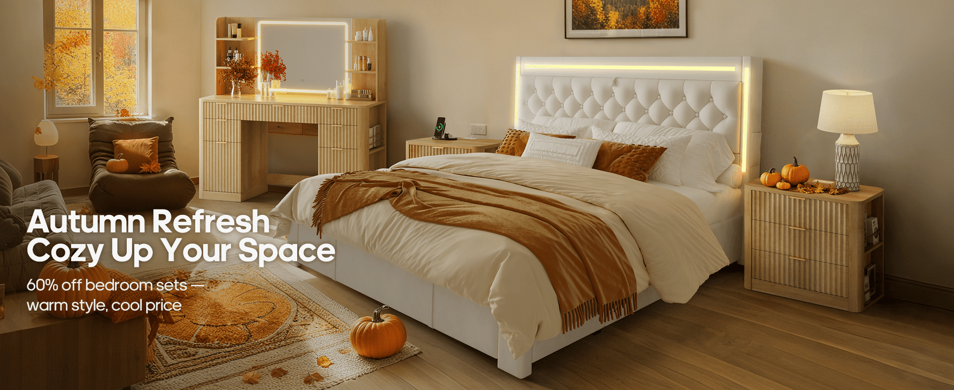 Velvet Fabric LED Bed Frame White